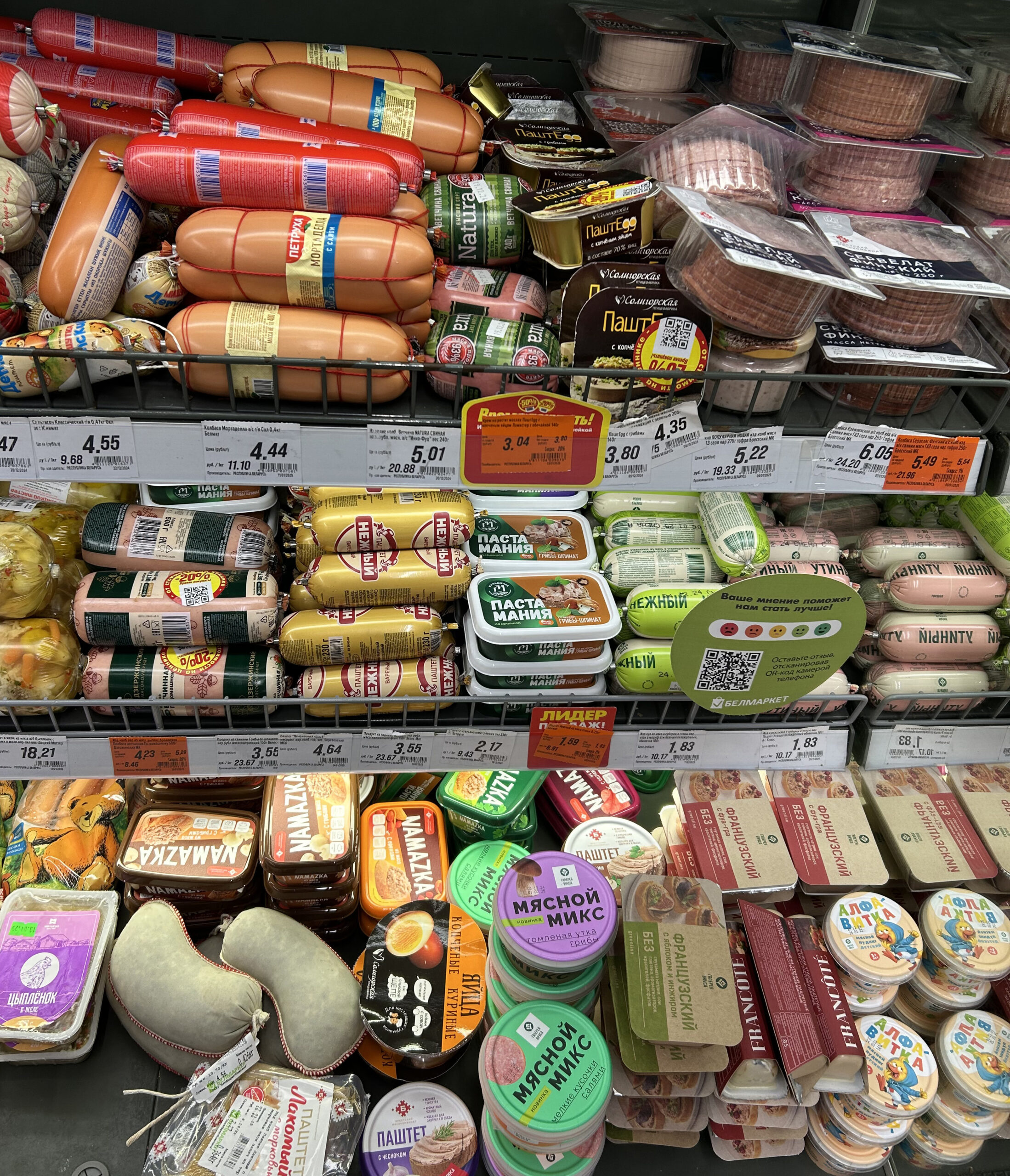 Сыр у крамах зараз у пераважнай большасці беларускай вытворчасці. Сярэдняя яго цана каля 4 руб за 200 г (4,77 зл.).