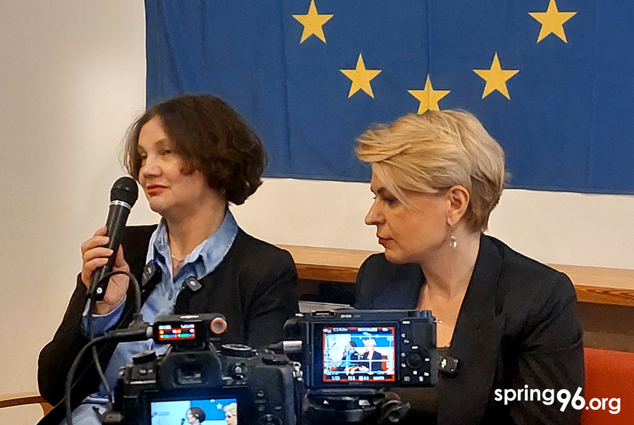 - 11 marca w Parlamencie Europejskim wystąpiła Palina Szarenda-Panasiuk (na zdjęciu z lewej), działaczka ruchu politycznego Europejska Białoruś, który opowiada się za integracją demokratycznej Białorusi z Unią Europejską. Do 1 lutego 2025 r. była ona polityczną więźniarką reżimu Łukaszenki. W swoim przemówieniu zaapelowała o dalsze wywieranie presji na władze w Mińsku, w celu uwolnienia więzionych za poglądy Białorusinów. Odwołując się do swoich niedawnych traumatycznych doświadczeń, określiła Białoruś współczesnym obozem koncentracyjnym w centrum Europy.